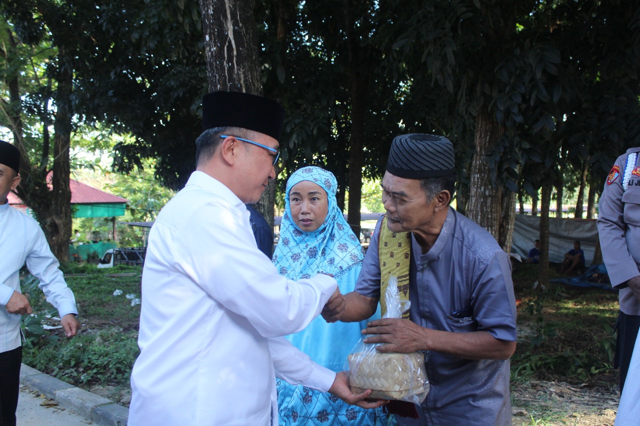 Kapolda Sultra Irjen Pol Didik Agung Widjanarko, S.IK., M.H., didampingi Wakapolda Brigjen Pol Amur Chandra Juli Buana, S.H., M.H., dan Irwasda Kombes Pol Hartoyo, S.IK., hadir dalam prosesi simbolis penyerahan daging kurban kepada perwakilan masyarakat. Penyerahan ini dilakukan sebagai bentuk nyata kepedulian institusi kepolisian terhadap masyarakat di momen penuh berkah ini. Kapolda menyampaikan bahwa pelaksanaan kurban ini juga mendapat dukungan dari masyarakat, yang turut berpartisipasi menyumbangkan hewan kurban.