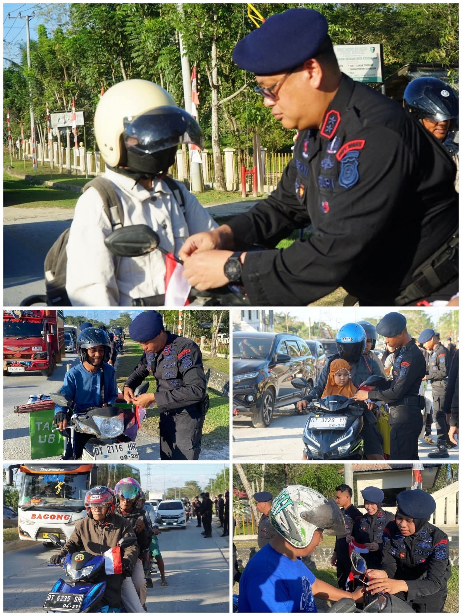 GLOBAL SULTRA.COM.Kendari,- Dalam rangka menyemarakkan Hari Ulang Tahun ke-80 Kemerdekaan Republik Indonesia, Satuan Brimob Polda Sulawesi Tenggara (Sultra) melaksanakan aksi pembagian dan pemasangan bendera merah putih kepada para pengguna jalan yang melintas di depan Markas Komando (Mako) Brimob Polda Sultra.Sabtu, 2 Agustus 2025