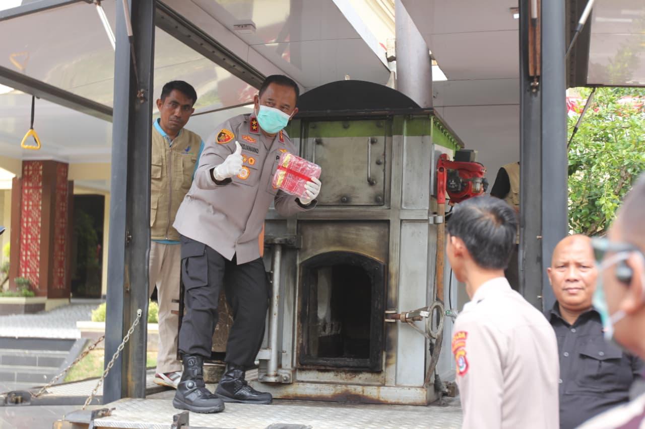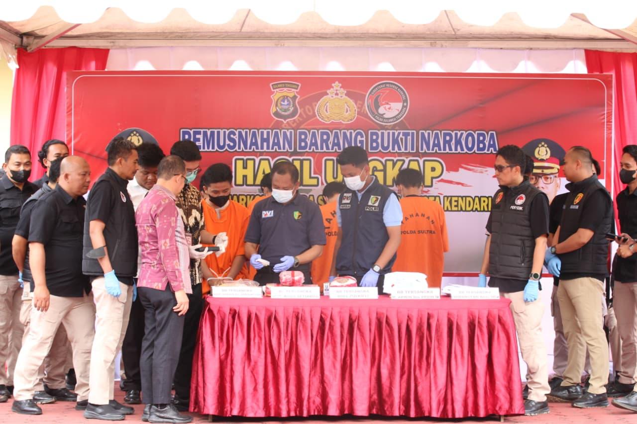 Dipimpin langsung oleh Kapolda Sultra Irjen Pol Didik Agung Widjanarko, S.H., M.H, pemusnahan tersebut juga diikuti oleh Wakapolda Sultra Kombes Pol Gidion Arief Setyawan, S.IK., S.H., M.Hum, para PJU Polda Sultra, Ketua DPRD Sultra, Kepala Kejaksaan Negeri Kendari, dan perwakilan Forkopimda serta tamu undangan lainnya.