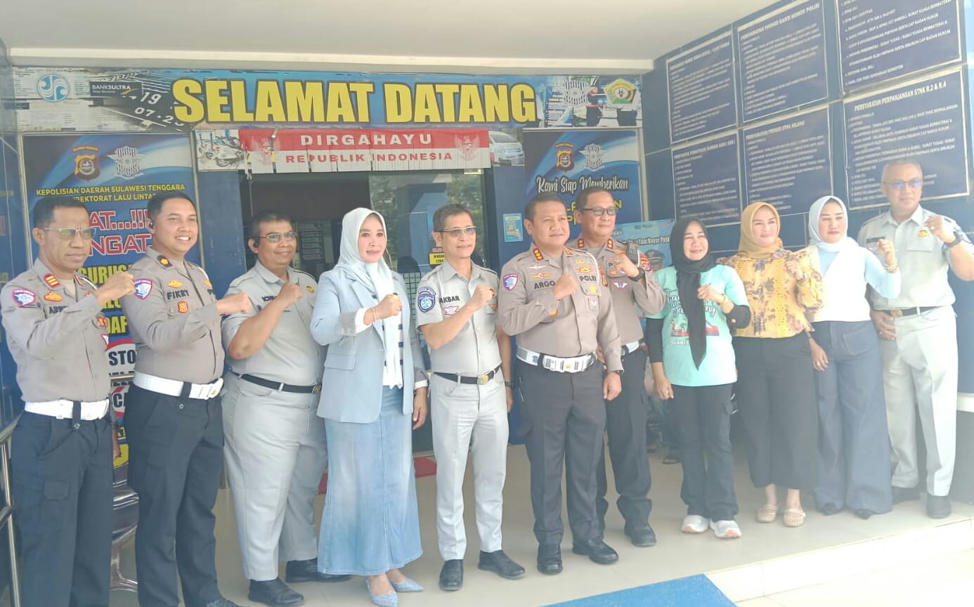 GLOBAL SULTRA COM. Kendari, 19 September 2025 – Dalam rangka Hari Keselamatan Berlalu Lintas di Jalan yang diperingati setiap 19 September serta Hari Ulang Tahun (HUT) Lalu Lintas ke-70 tahun 2025, Direktorat Lalu Lintas (Ditlantas) Polda Sulawesi Tenggara bekerja sama dengan Jasa Raharja dan Badan Pendapatan Daerah (Bapenda) Sultra melaksanakan kegiatan apresiasi bagi wajib pajak yang tertib membayar pajak. Jumat (19/09/2025).