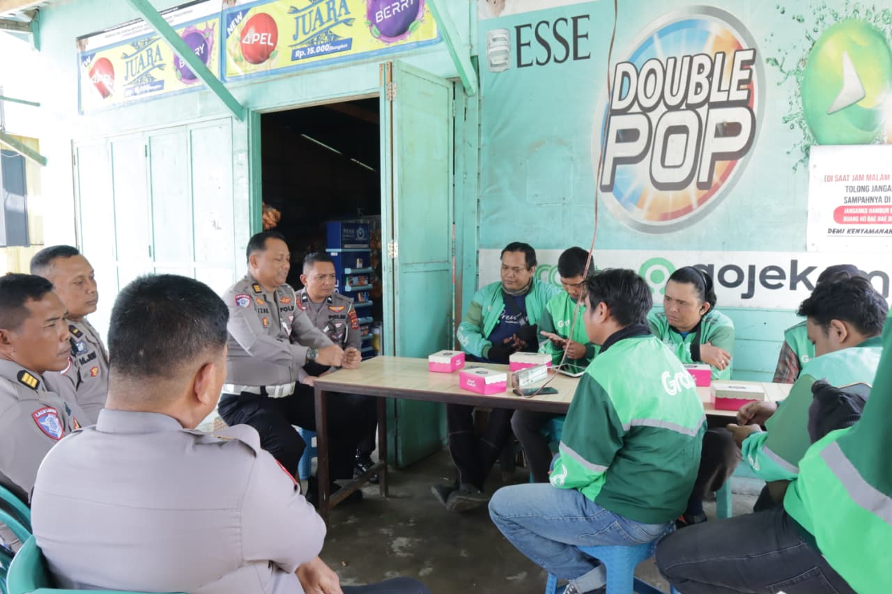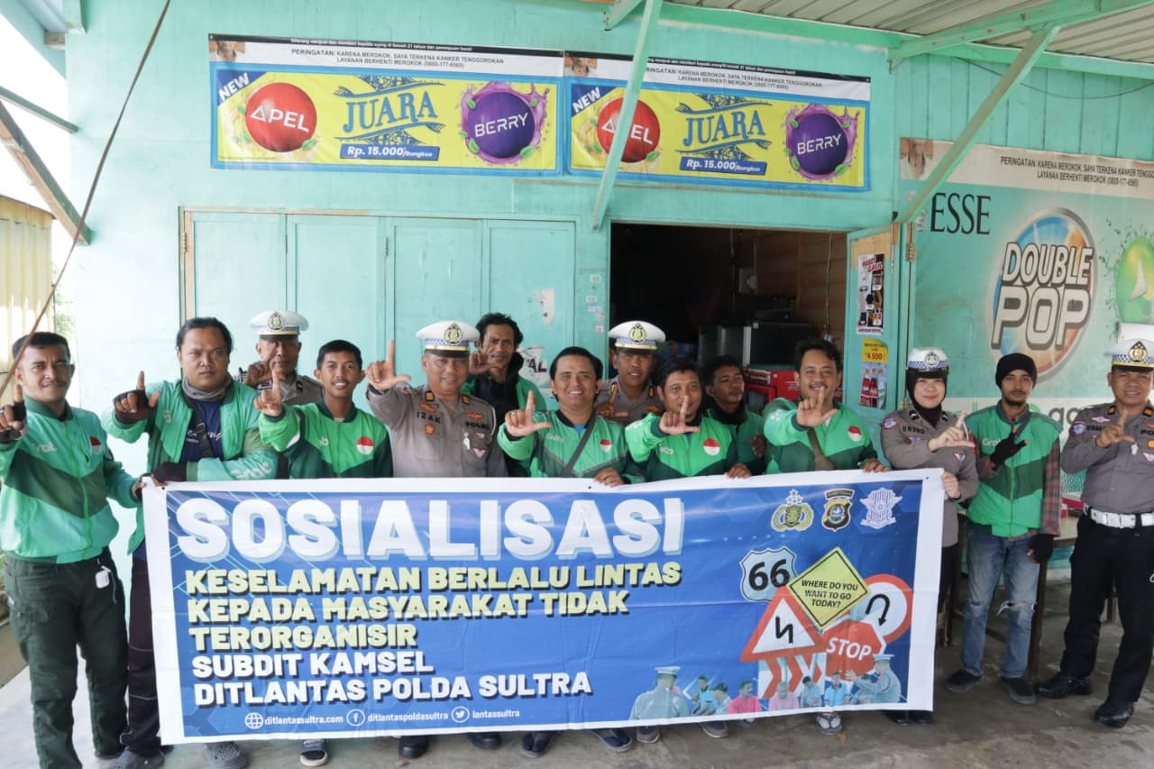 GLOBAL SULTRA.COM.Kendari, – Direktorat Lalu Lintas (Ditlantas) Polda Sulawesi Tenggara melalui Subdit Keamanan dan Keselamatan (Kamsel) menggelar kegiatan β€œPolantas Menyapa” dengan sasaran para pengemudi ojek online dan masyarakat di sekitar Pangkalan Ojek Pasar Lawata dan Pangkalan Grab, Selasa (23/9/2025) pagi.