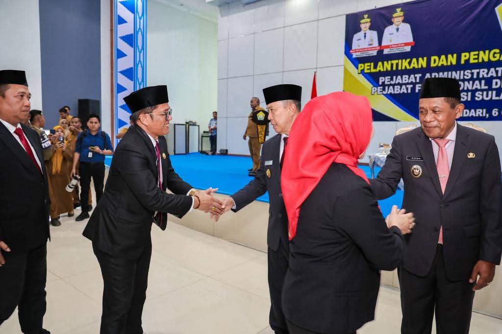 Gubernur Andi Sumangerukka mengajak seluruh pejabat yang baru dilantik untuk menjadikan momentum pelantikan sebagai motivasi bekerja lebih baik dan memberikan pelayanan nyata kepada masyarakat.