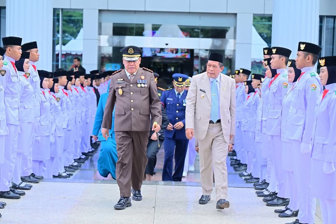 GLOBAL SULTRA COM. Kendari, – Gubernur Sulawesi Tenggara (Sultra) Mayjen TNI (Purn) Andi Sumangerukka memimpin Upacara Peringatan Sumpah Pemuda ke-97 di Halaman Kantor Gubernur Sultra, Selasa (28 Oktober 2025).