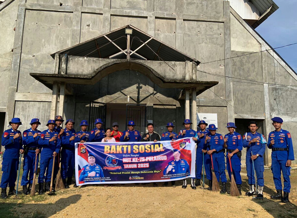 Ditpolairud Polda Sultra Gelar Bakti Sosial Bersih-Bersih Tempat Ibadah Sambut HUT Polairud ke-75