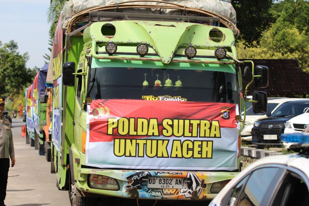 Solidaritas Untuk Korban Bencana Alam di Aceh, Sumut, dan Sumbar : Polda Sultra Kirim 23 Ton Beras dan Ribuan Logistik