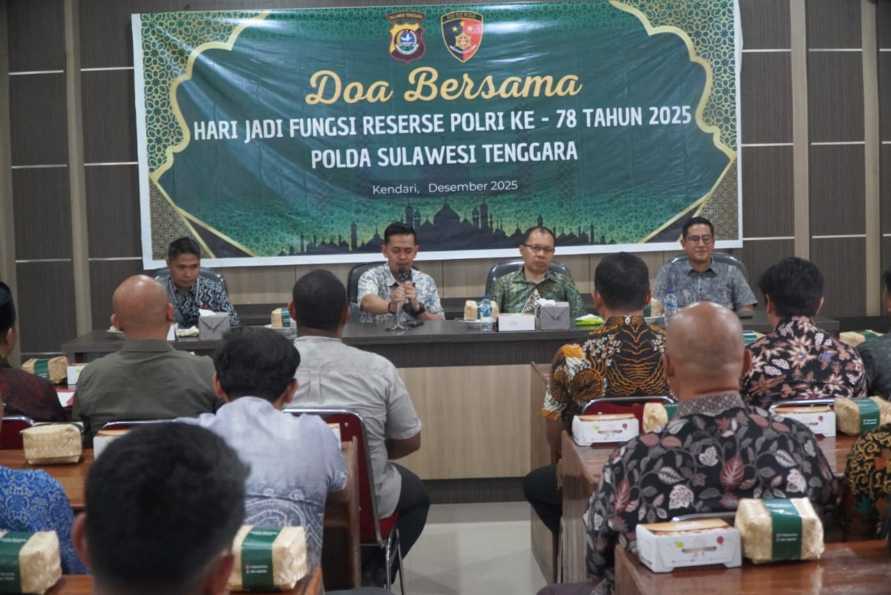 GLOBAL SULTRA.COM.KENDARI, — Dalam rangka memperingati Hari Ulang Tahun (HUT) Reserse Polri ke-78 tahun 2025, Direktorat Reserse Polda Sulawesi Tenggara yang meliputi Ditreskrimum, Ditreskrimsus, dan Ditresnarkoba menggelar kegiatan doa bersama di Aula Ditreskrimum pada Jumat siang, 5 Desember 2025.