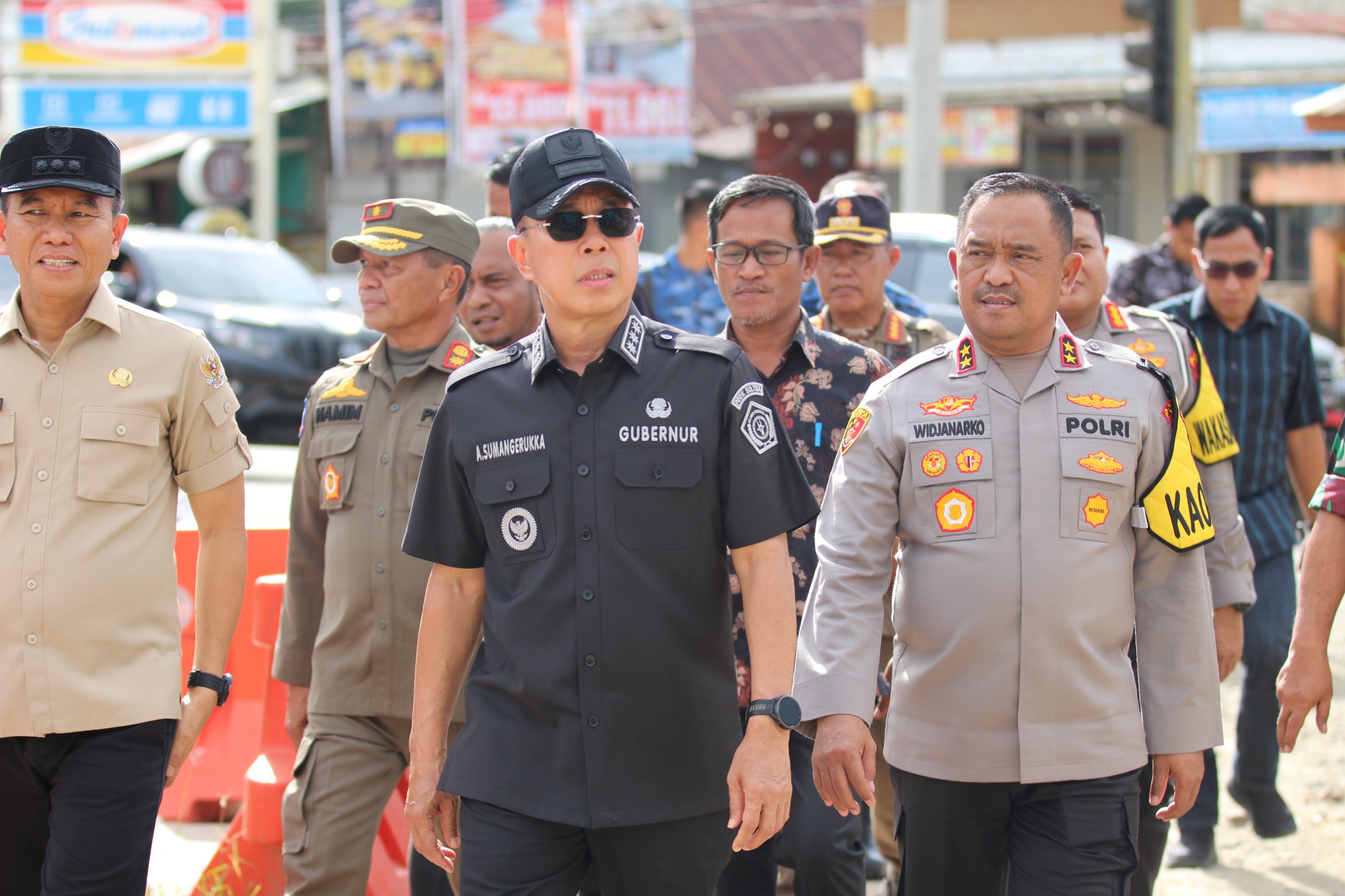 Global Sultra com.Kendari,- Kepala Kepolisian Daerah Sulawesi Tenggara (Kapolda Sultra) Irjen Pol Didik Agung Widjanarko, S.I.K., M.H., bersama Gubernur Sulawesi Tenggara Mayjen TNI (Purn) Andi Sumangerukka melaksanakan pengecekan Pos Pengamanan (Pos Pam) Operasi Lilin Anoa 2025, Sabtu (20/12/2025).
