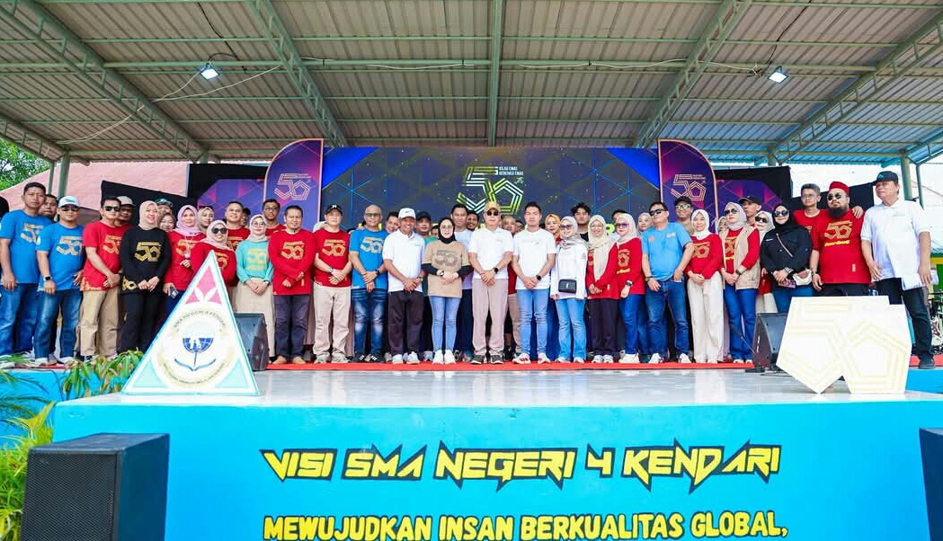 Global Sultra com.Kendari. Gubernur Sulawesi Tenggara, Mayjen TNI (Purn.) Andi Sumangerukka, menghadiri acara puncak peringatan Hari Ulang Tahun (HUT) ke-50 SMAN 4 Kendari yang digelar di Lapangan SMAN 4 Kendari, Sabtu (20 Desember 2025).