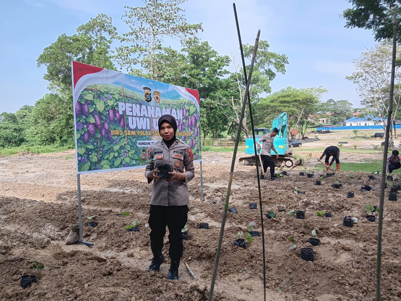 ​Kegiatan yang dimulai pukul 07.30 WITA tersebut dipimpin langsung oleh Kasat Binmas Polres Konawe Utara. Sebanyak 200 bibit uwi ungu ditanam sebagai langkah strategis dalam mengoptimalkan lahan produktif dan memperkuat ketersediaan pangan lokal di wilayah hukum Polres Konawe Utara.