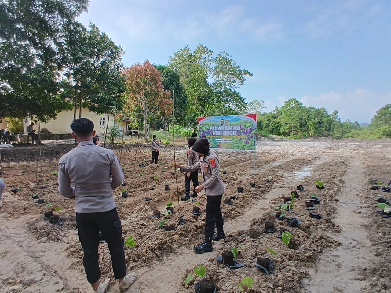 Dukung Ketahanan Pangan, Sat Binmas Polres Konawe Utara Tanam 200 Bibit Uwi Ungu di Lahan Brimob