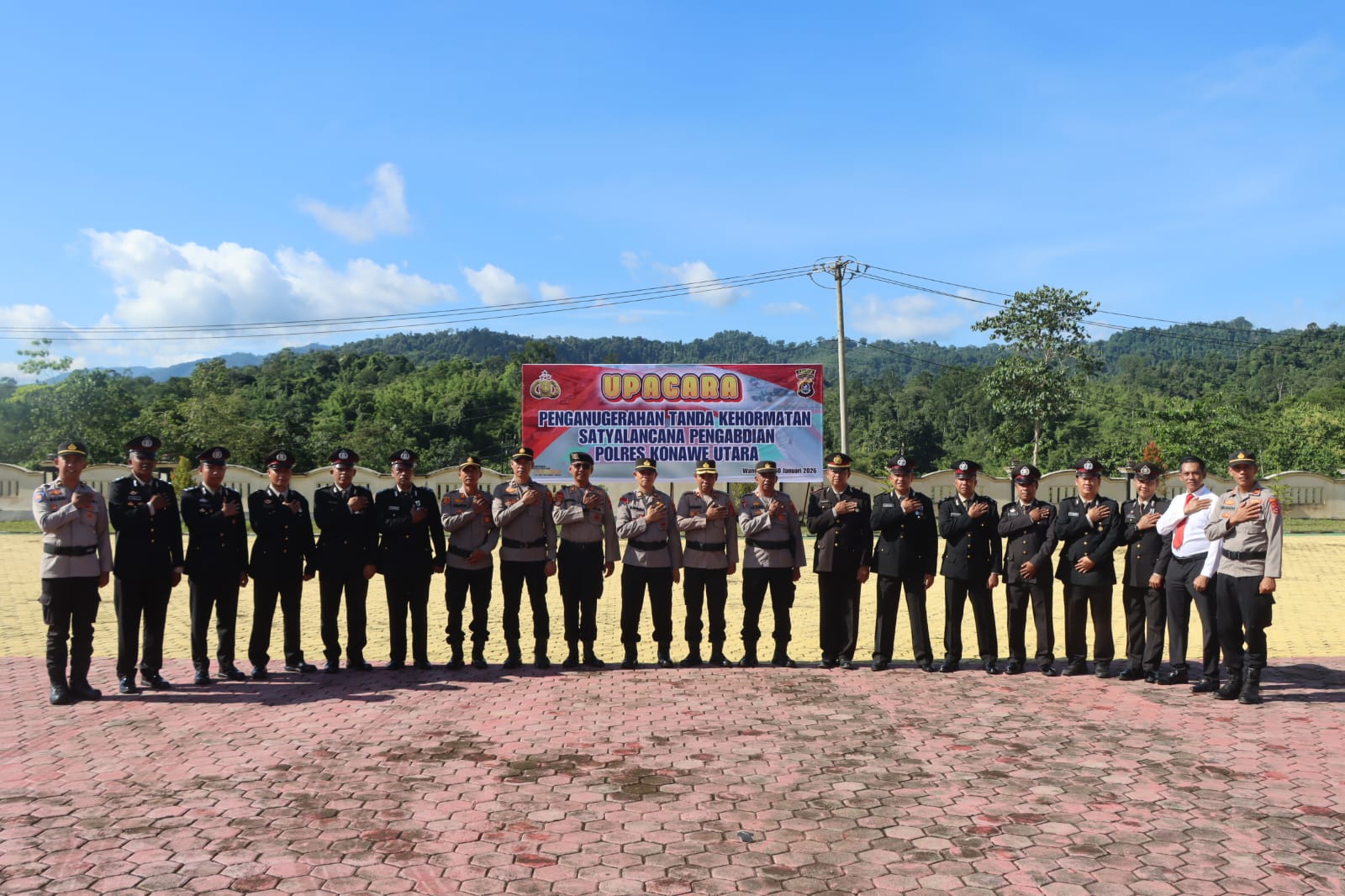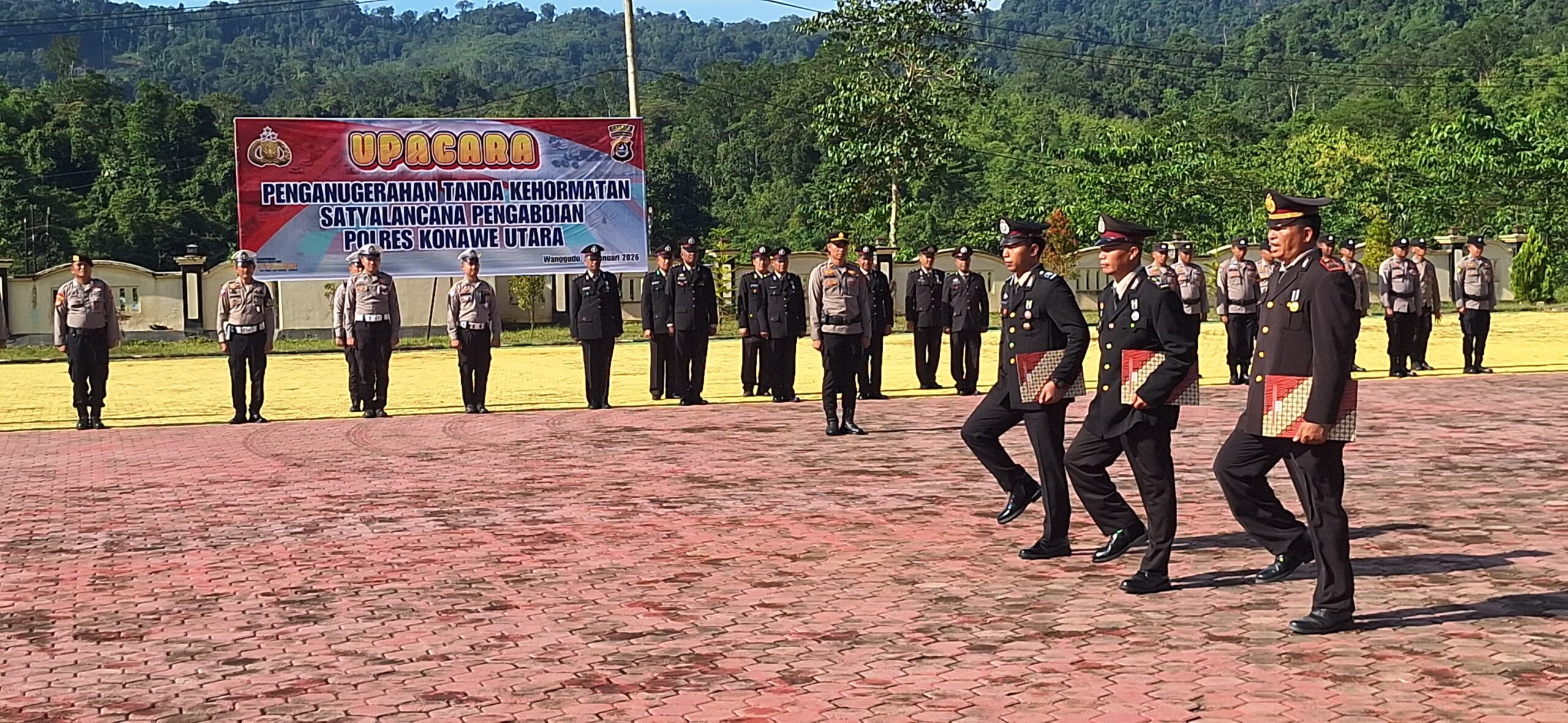 GLOBAL SULTRA.COM.Konawe Utara, – Kepolisian Resor (Polres) Konawe Utara menggelar Upacara Penganugerahan Tanda Kehormatan Satyalancana Pengabdian bagi personel yang telah menunjukkan dedikasi dan loyalitas tanpa batas. Upacara tersebut berlangsung khidmat di Lapangan Apel Mapolres Konawe Utara pada Jumat (30/1/2026) pagi.
