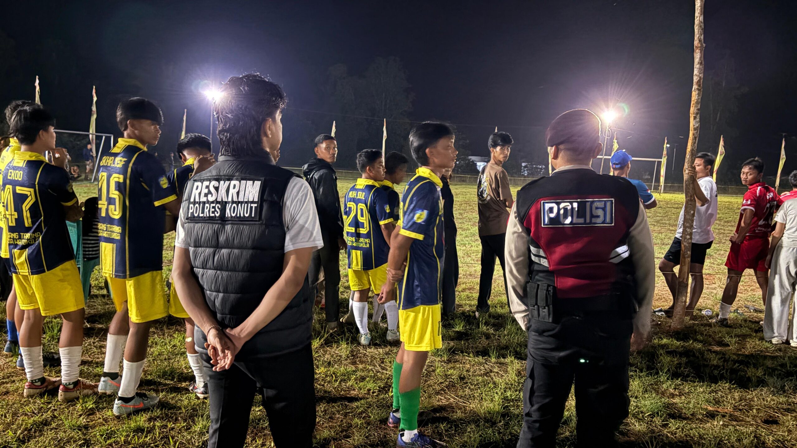 Jaga Kondusifitas Turnamen Mini Soccer, Personel Polres Konawe Utara Intensifkan Patroli Malam