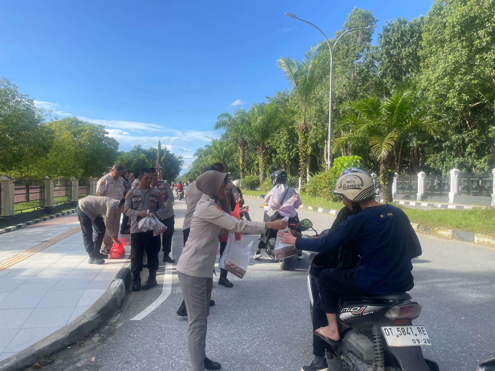 Aksi sederhana ini menjadi wujud kepedulian di bulan suci Ramadan 1447 Hijriah. Satu per satu paket takjil diserahkan kepada warga yang tampak antusias dan menyambut dengan ucapan terima kasih. Tidak sedikit pengendara yang memperlambat laju kendaraannya saat menerima bingkisan berbuka puasa tersebut.