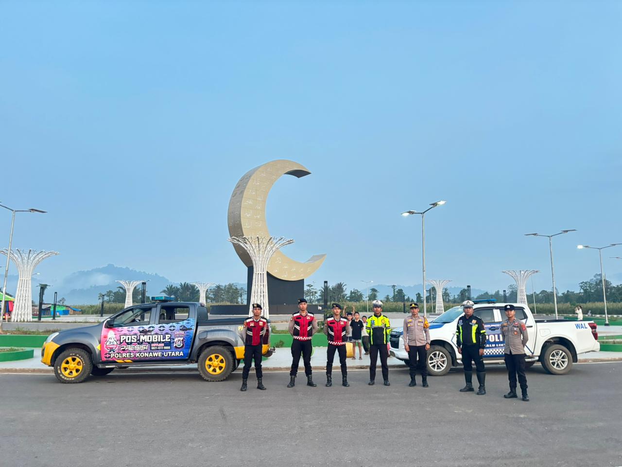 * Pukul 05.30 WITA: Personel memantau situasi di Bundaran CBD untuk mengantisipasi potensi balap liar atau gangguan keamanan pasca-Subuh.