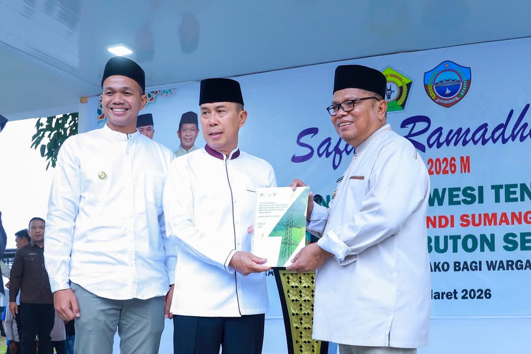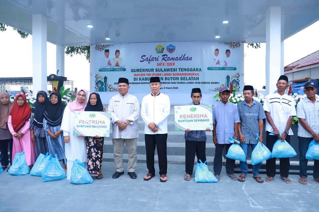 Global Sultra com. Gubernur Sulawesi Tenggara (Sultra), Mayjen TNI (Purn) Andi Sumangerukka, menyerahkan bantuan kepada masyarakat saat melaksanakan Safari Ramadan di Kabupaten Buton Selatan. Kegiatan tersebut dirangkaikan dengan buka puasa bersama warga dan jajaran Pemerintah Kabupaten Buton Selatan di Rumah Jabatan Bupati, Jumat (6 Maret 2026).