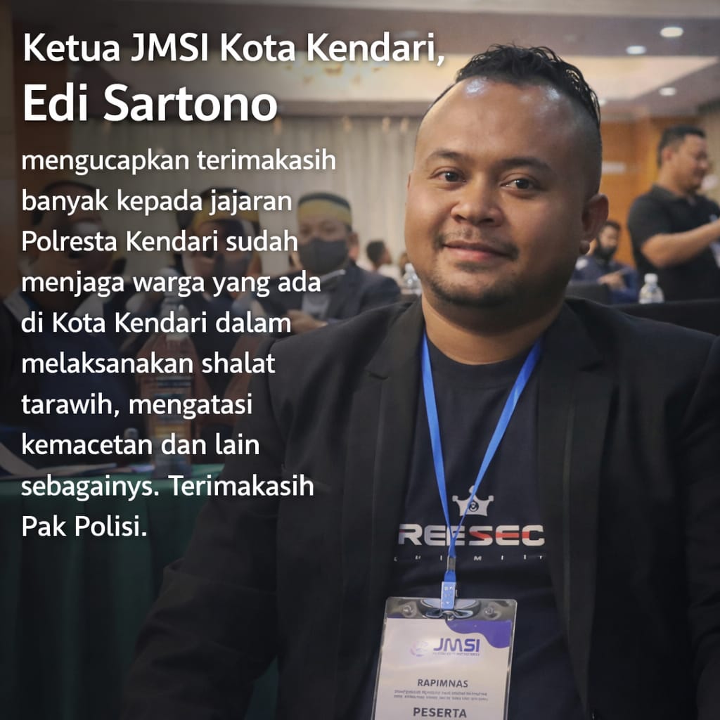 Ketua JMSI Kota Kendari, Edi Sartono, menyampaikan apresiasi dan ucapan terima kasih atas dedikasi aparat kepolisian yang dinilai hadir secara nyata di tengah masyarakat.