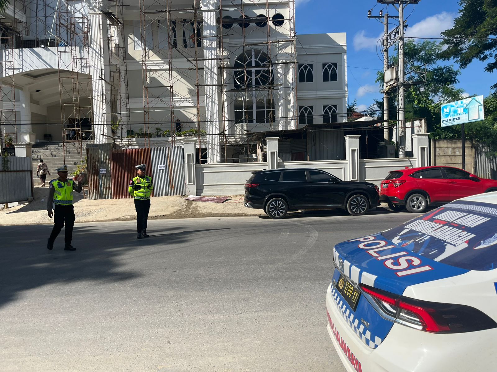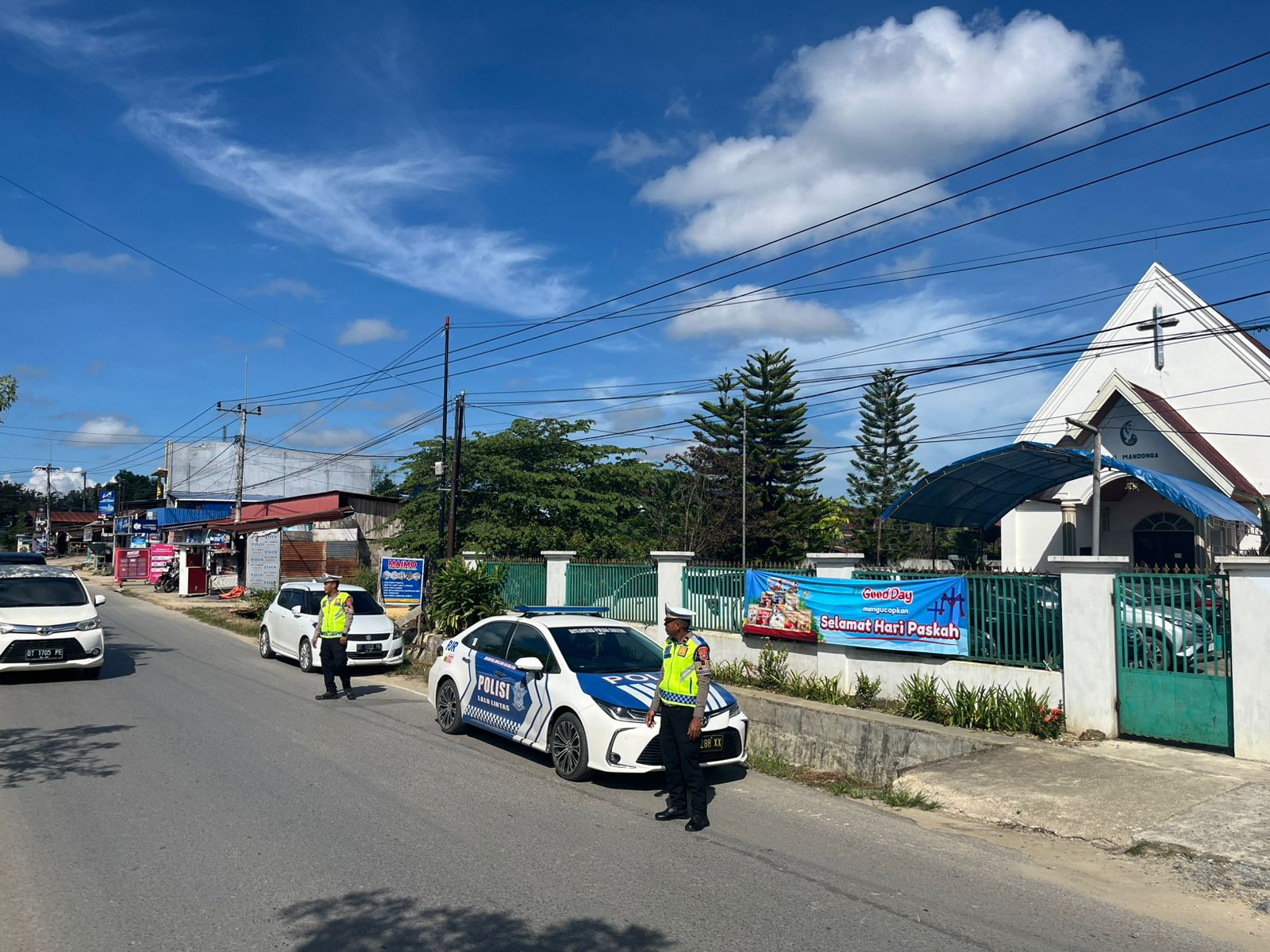 Kehadiran petugas bertujuan untuk memastikan kelancaran arus lalu lintas sekaligus memberikan rasa aman bagi jemaat yang melaksanakan ibadah.