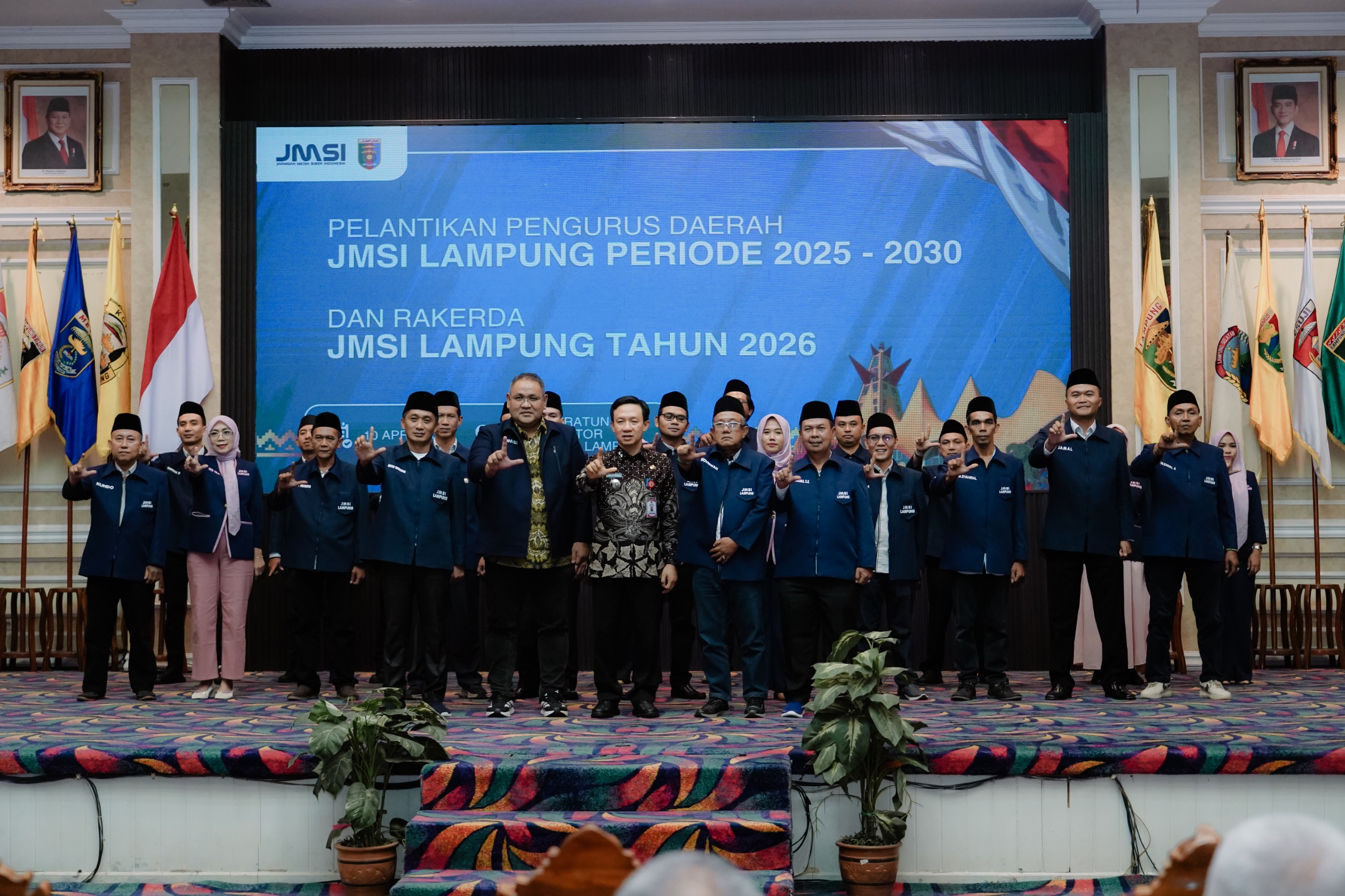 GLOBAL SULTRA.COM.BANDAR LAMPUNG,— Pengurus Daerah Jaringan Media Siber Indonesia (JMSI) Lampung periode 2025–2030 resmi dilantik di Balai Keratun Pemerintah Provinsi Lampung, Jumat (10/4/2026). Pelantikan dilakukan langsung oleh Ketua Umum JMSI Pusat Teguh Santosa dan dihadiri berbagai unsur pemerintah, organisasi pers, serta pemangku kepentingan daerah.